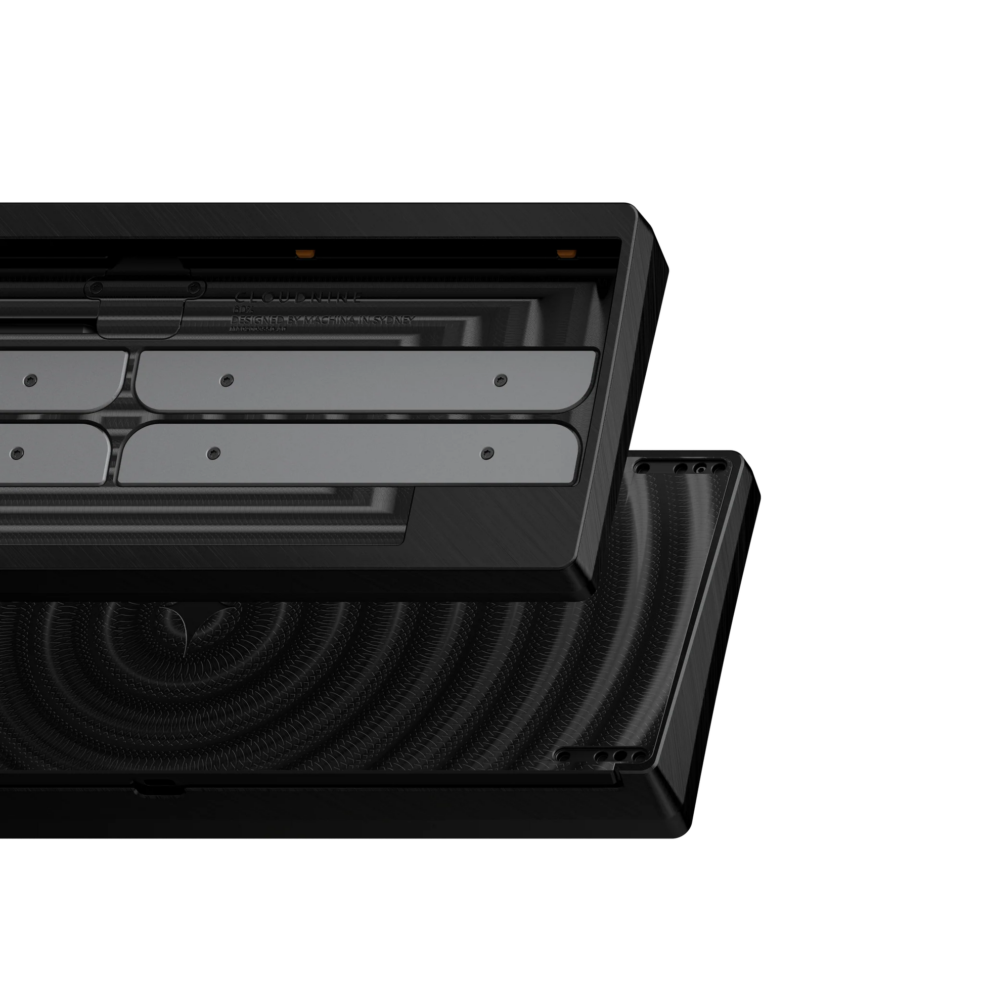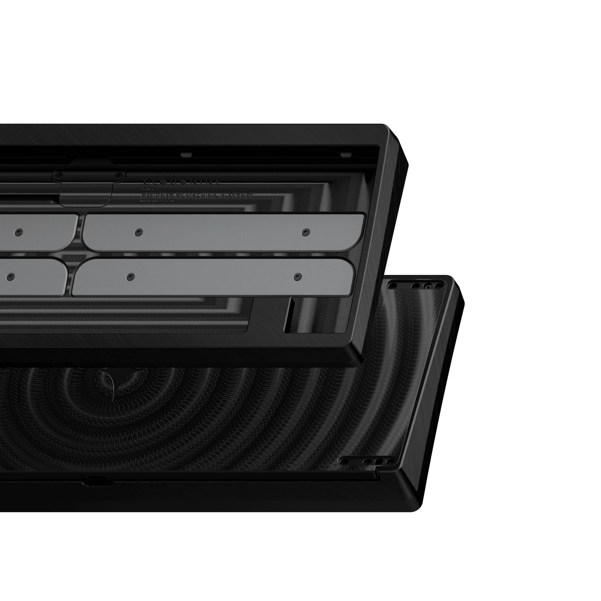 - Stainless steel bottom case with 4 internal stainless steel weights ( Raw stainless steel with black PVD finish, featuring visible machining marks & AF coated SS weights )